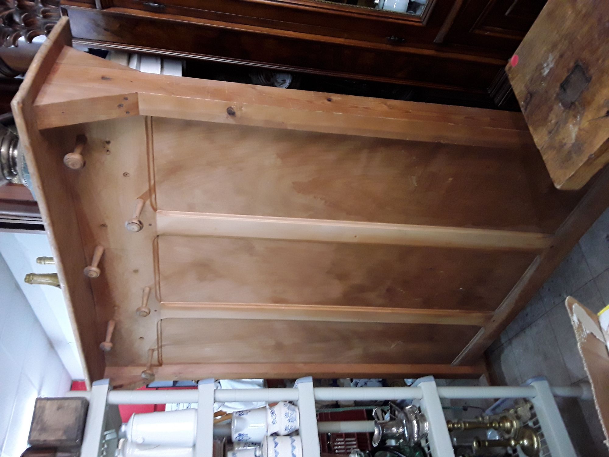 Table en sapin à deux plateaux pouvant servir de desserte ou de plan de travail dans une cuisine. Proposée à 270 Euros. L=1m X p=70cm X H=76 cm